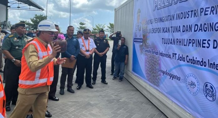 KENDARI, ANALISISSULTRA.COM –Pemerintah Provinsi Sulawesi Tenggara (Pemprov Sultra) mengekspor komoditi hasil perikanan tujuan Filipina dan Amerika Serikat. Pengiriman komoditi tersebut dilepas secara resmi oleh Sekda Sultra, Drs. H Asrun Lio melalui pelabuhan peti kemas Pelindo Kendari, Selasa (20/2).